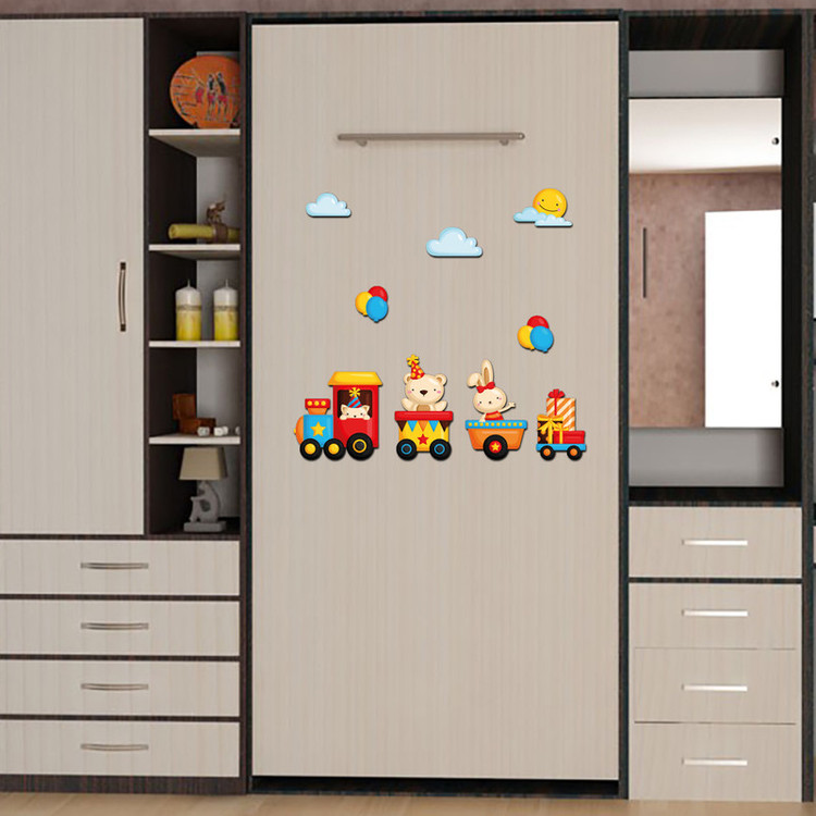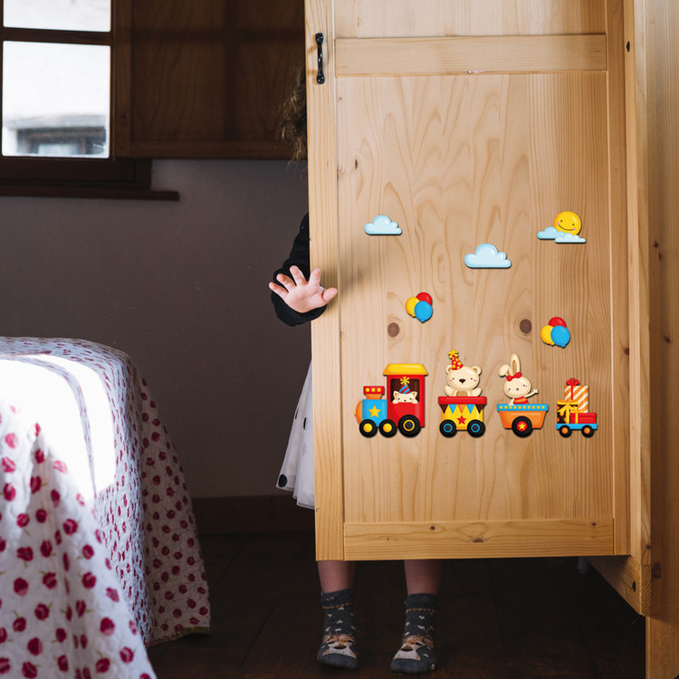جنس استیکر: ام دی اف با روکش پی وی سی قابل شستشو با دستمال مرطوب این محصول برای فضاهای کوچک همانند درب اتاق کودک و کمد و تخت اتاق کودک مناسب میباشد