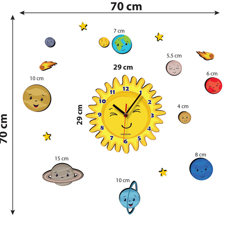 جنس محصول mdf با ضخامت 3 میلیمتر با روکش پی وی سی قابل شستشو با دستمال مرطوب موتور ساعت کوارتز آرام گرد بدون صدا شکل عقربه ها بنا به موجودی بازار ممکن است متغیر باشد