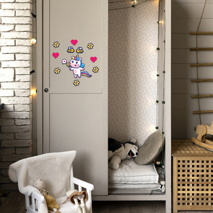 جنس استیکر: ام دی اف با روکش پی وی سی قابل شستشو با دستمال مرطوب این محصول برای فضاهای کوچک همانند درب اتاق کودک و کمد و تخت اتاق کودک مناسب میباشد