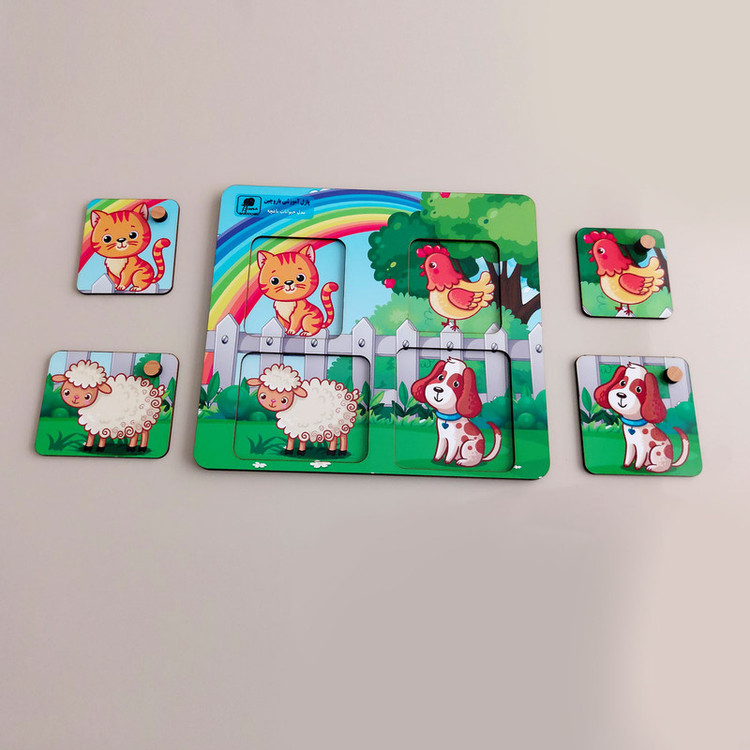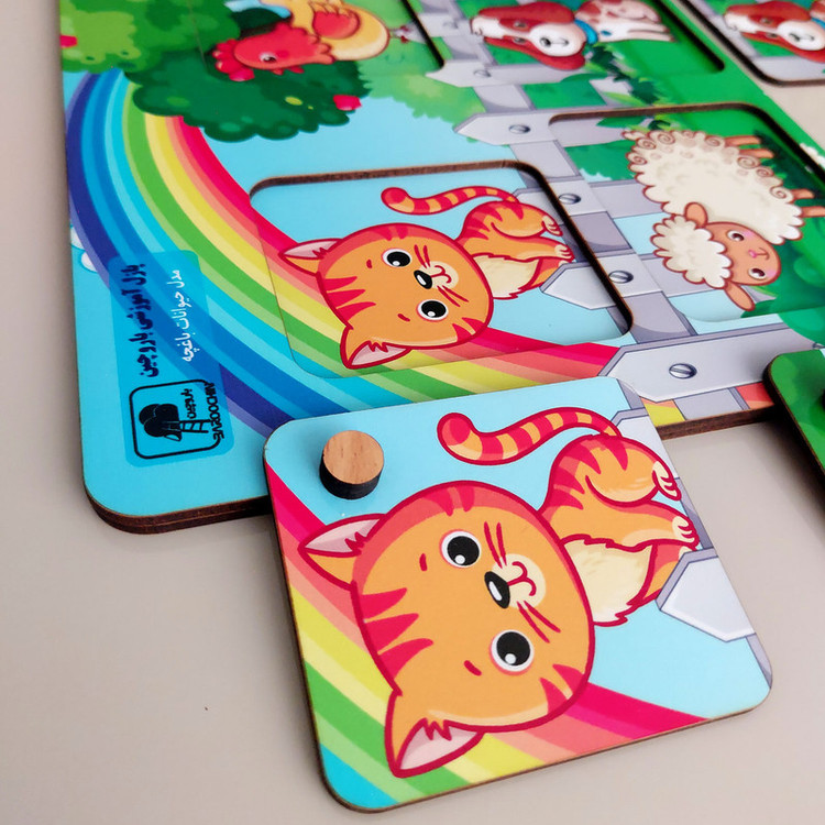 با توجه به گروه هدف این پازل که کودکان زیر 2 سال می باشد، زیر پازل شکل حیوانات چاپ شده و کودک باید قطعه مربوط به هر حیوان را در جای خود قرار دهد. شکل قطعات نیز به تناسب سن کودک ساده طراحی شده تا به راحتی در جای خود قرار گیرد.