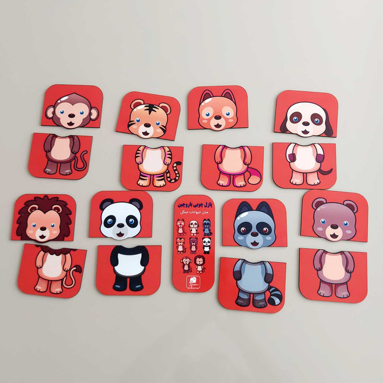 در این پازل، کودک باید قطعه مربوط به سر حیوان را متناسب با تنه حیوان پیدا نموده و به آن وصل کند.