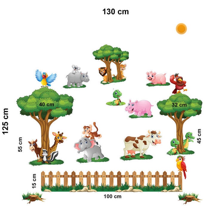 استیکر دیواری کودک باروچین مدل حیوانات جنگل کد 232