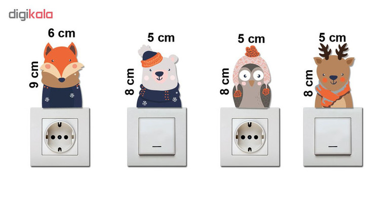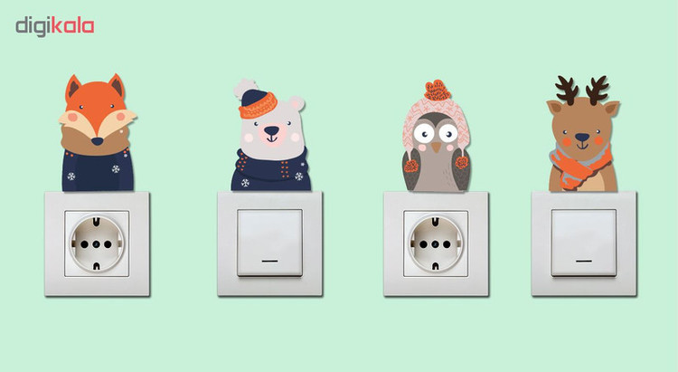 استیکر چوبی کلید و پریز ژیوار طرح حیوانات سری 5 بسته 4 عددی