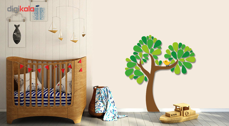 استیکر چوبی باروچین طرح گنجشک و درخت